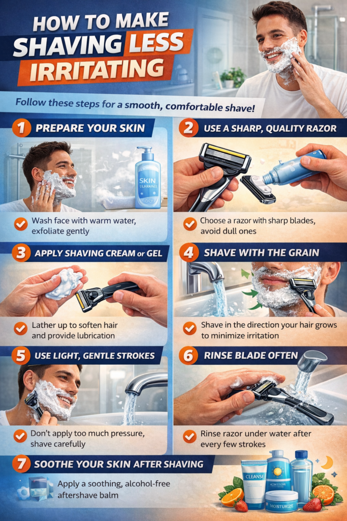 In this guide, we’ll cover everything you need to know about making shaving less irritating, including preparation, techniques, products, aftercare, and lifestyle habits that improve skin health over time. By the end, you’ll have a complete roadmap to shaving with confidence, whether you’re a daily shaver or occasional groomer.